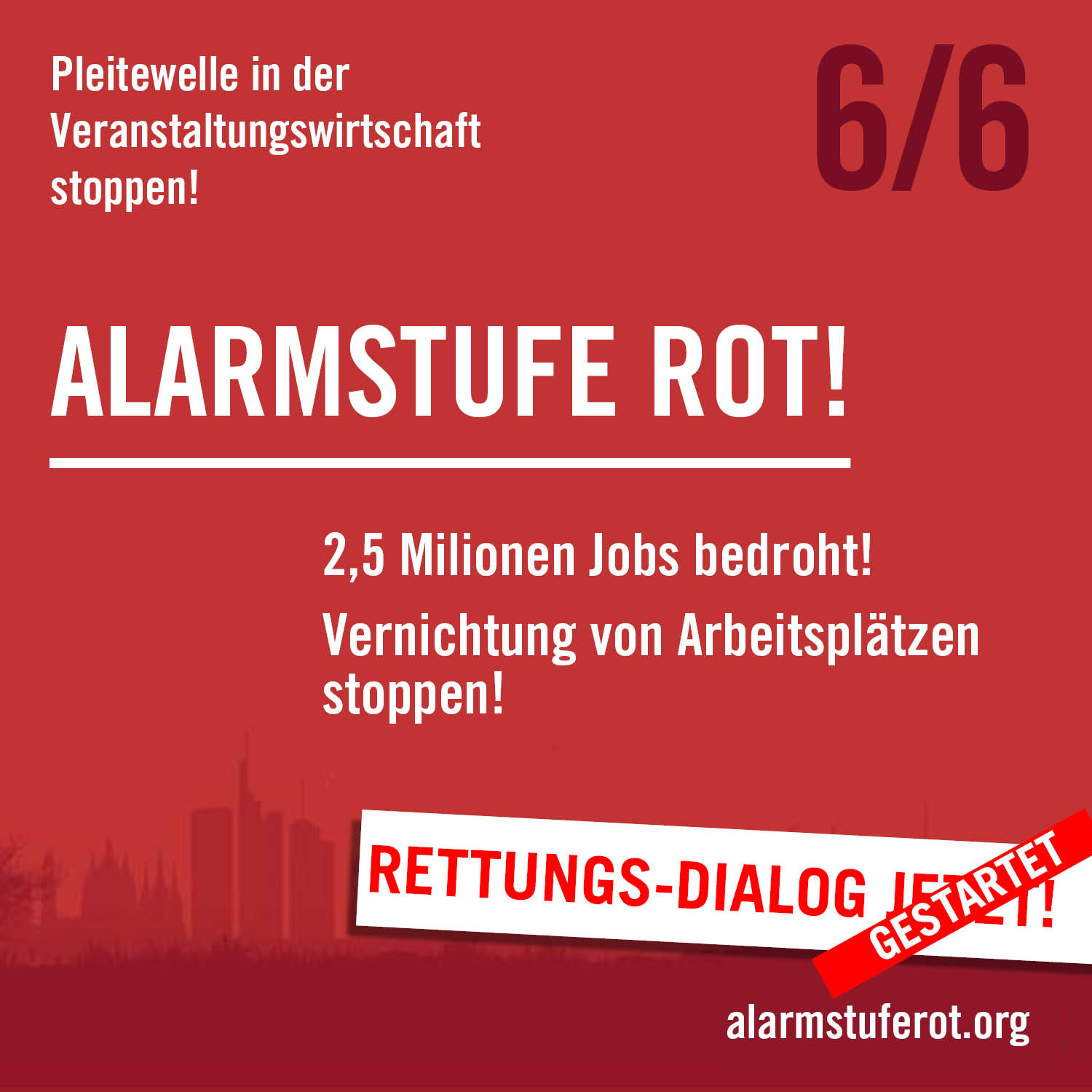 Wir benötigen in unserer unverschuldeten existenziellen Not dringend Hilfen, um zu überleben. Wir haben Lösungen erarbeitet, wie diese Hilfen aussehen können. Im Detail halten wir die folgenden sechs Maßnahmen für sinnvoll und zielführend, um die Veranstaltungswirtschaft und damit tausende Unternehmen sowie Millionen Jobs zu retten.