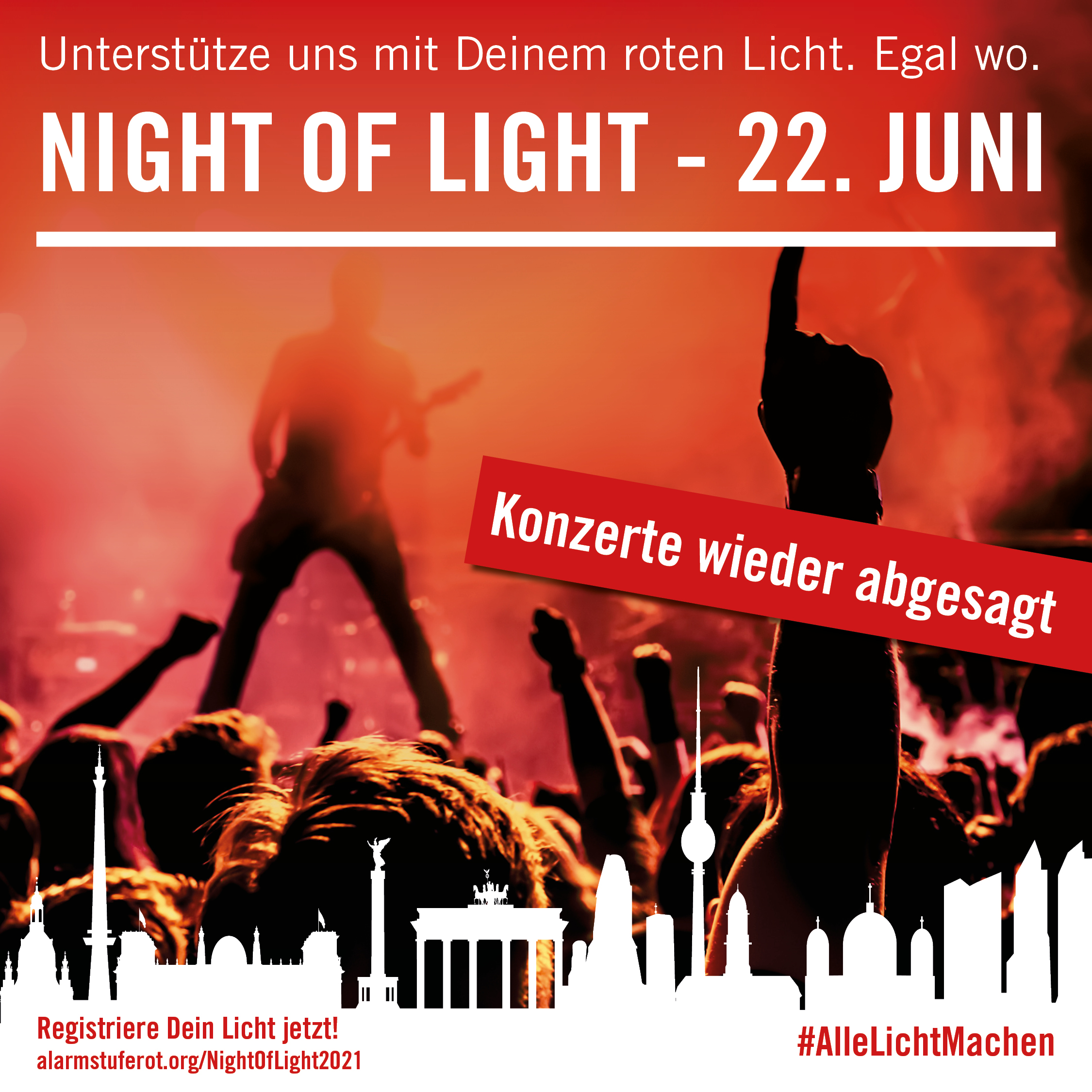 Selbst ein Jahr später gibt es für Veranstaltungsmacher keine Hoffnung, dass es bald wieder losgeht. Die Bevölkerung ist kulturell ausgehungert. Deshalb ist wieder eine Night of Light nötig. Eine, bei der alle Menschen und Institutionen mitmachen, die Veranstaltungen vermissen. Sei es beruflich, sei es privat, sei es kulturell, sei es sozial. Gemeinsam zünden alle ihr Licht an.